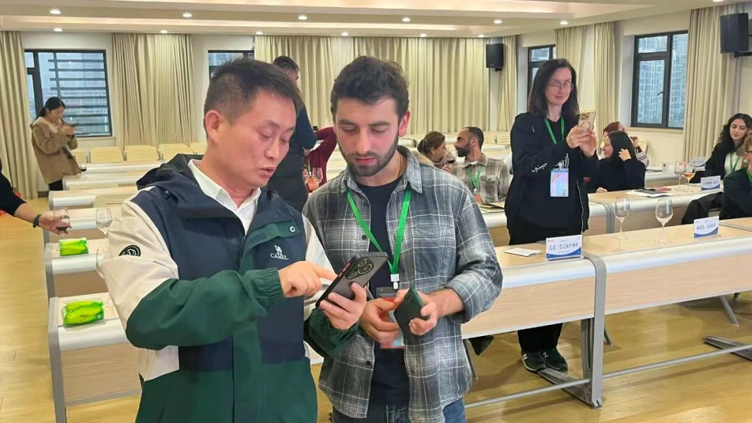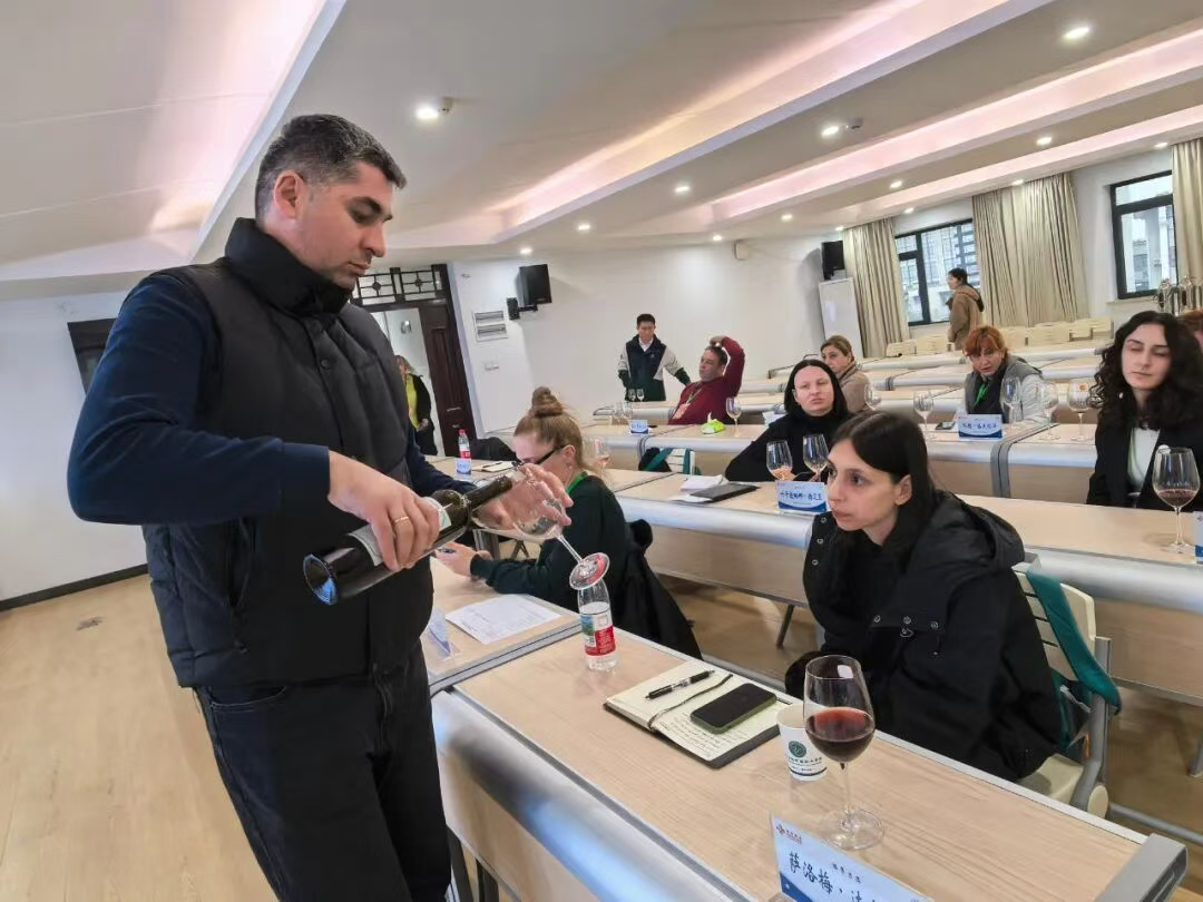 而真正的共鸣,发生在交流时分。格鲁吉亚的专家带来两瓶当地的佳酿,与长城葡萄酒并列于灯光之下,仿佛两种文明在杯中相遇。学员们细细对比、畅谈风土,在酒香中读懂彼此的酿造智慧与传统积淀。那一刻,东西方不再遥远,葡萄酒成为无需翻译的语言。
