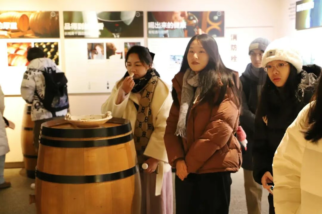 12月14日,长城桑干酒庄与沙城工厂迎来了一批特殊的访客。在北京大学开设的《葡萄酒背后的文化与科学》通识课实践环节中,来自北京大学、清华大学、中国农业大学的60位学子走进了葡园与酒窖。他们沉浸于葡萄的芬芳与酒液的醇厚之间,亲身感受中国葡萄酒产业背后所蕴含的文化底蕴与科技力量。