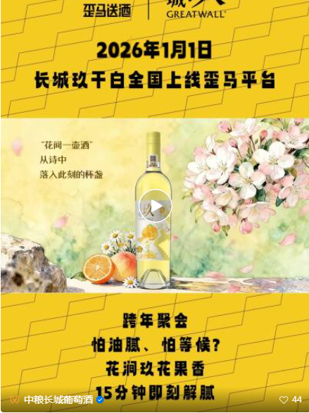 对于长城玖而言,布局即时零售不仅意味着渠道的补充,更是品牌与消费者建立更频繁、更直接连接的窗口。借助歪马送酒的平台影响力,长城玖将让更多人感受到“花涧有玖,欢聚成宴”的温暖与清新。